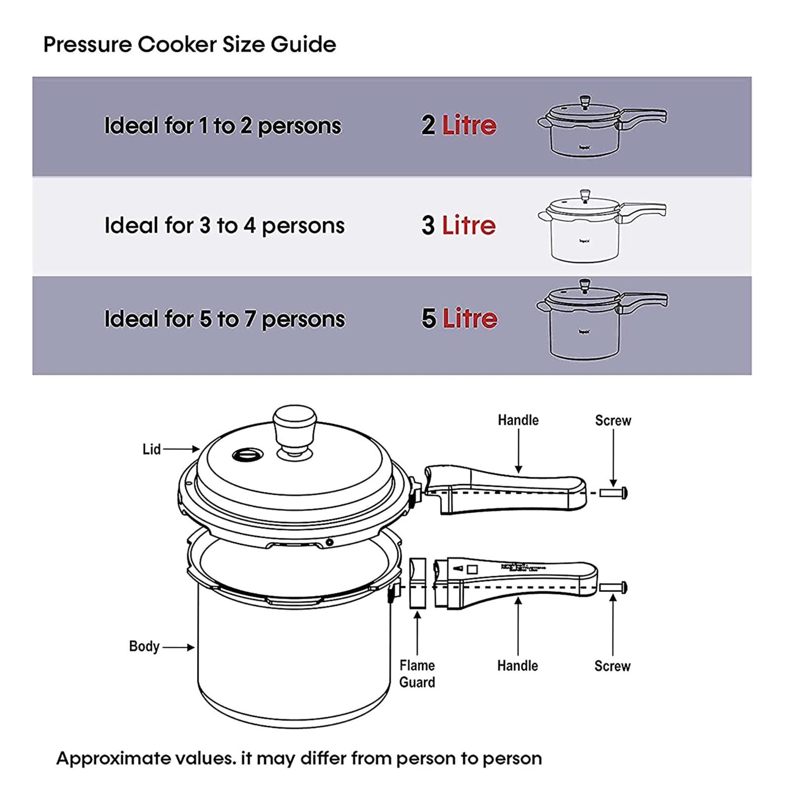 Capacity: 3 Litres Perfectly sized for small to medium-sized families, this 3-litre capacity cooker allows you to prepare wholesome meals quickly, whether it's rice, lentils, soups, or vegetables.
